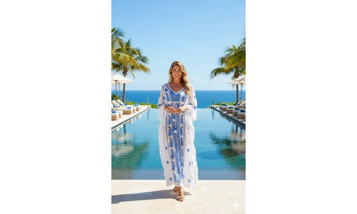 The Yulia Coverup is designed to be lightweight and breathable, featuring a square open back tied at the shoulder with beaded tassels. Her flowing body and deep V-Neck encapsulate all you need from a beach...