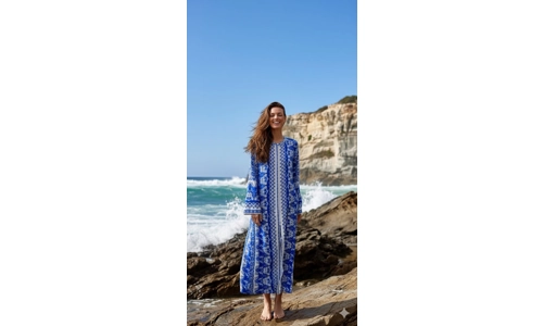 Whether you're heading to the beach or enjoying a casual day out, this elegant beach outfit is perfect for any occasion. The floaty silhouette dress flows gracefully with every step, giving you that effortless, laid-back vibe. The fluted cuff dress adds a touch of sophistication, making it suitable for both daytime adventures and evening gatherings.