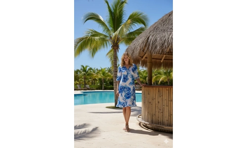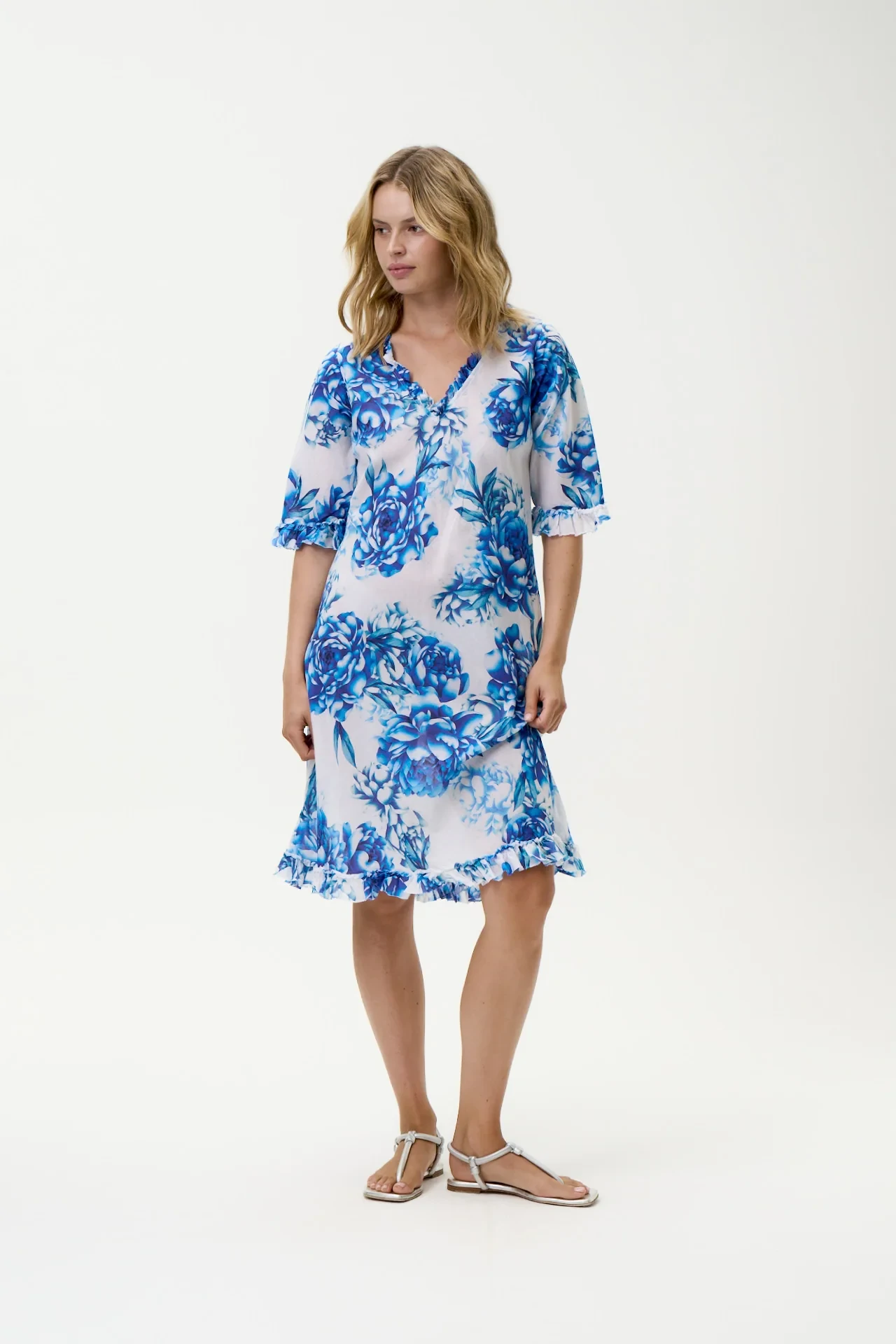 Step into effortless style with our Middy Indi-Kefalonia-Cotton-Blue Roses dress, the perfect addition to your wardrobe for any occasion. This fashionable midi dress is designed with a stunning blue rose print that adds a touch of elegance and charm, making it an ideal choice for casual evening wear or a day out with friends.