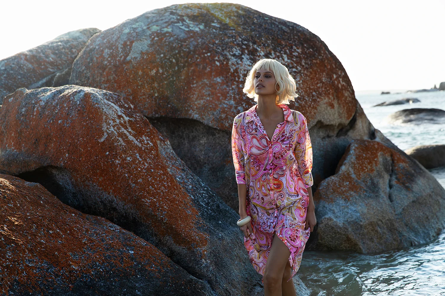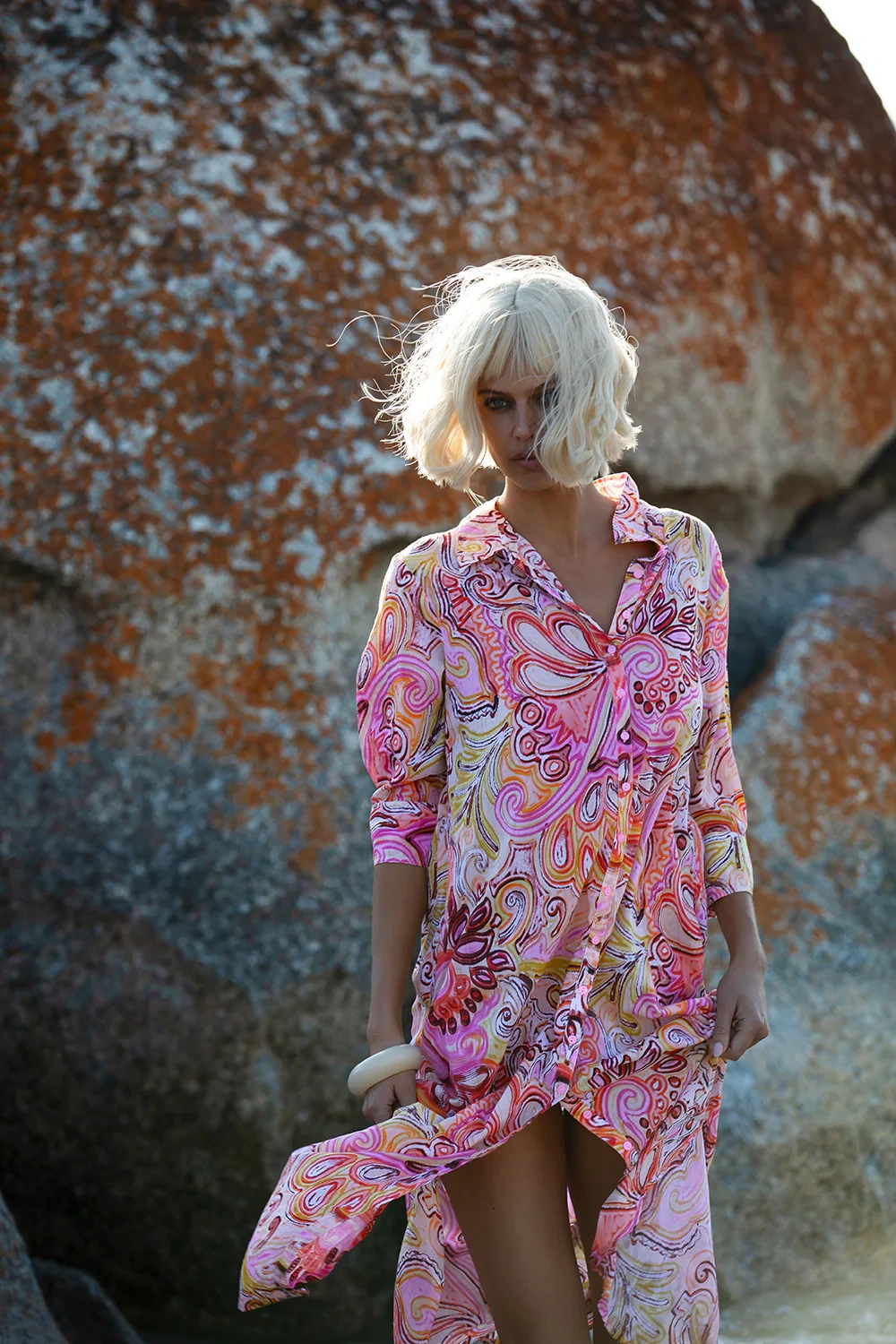 Introducing the 100% washed cotton shirt dress that’s perfect for those sunny days and laid-back weekends! The Daisy button-down dress features a delightful multi-swirl pattern that adds a touch of fun and flair to your wardrobe. Whether you're heading to a picnic in the park or enjoying a casual brunch with friends, this casual summer dress is your go-to choice for effortless style.