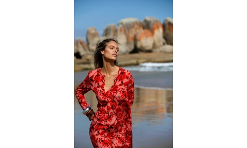 With its elegant evening wear appeal, the Long Genie dress is perfect for those special moments when you want to shine. The beautiful coral color adds a pop of vibrancy to your wardrobe, making it a must-have for any fashion-forward woman. The fluted cuffs design adds a touch of sophistication, giving the dress a unique flair that sets it apart from the rest.