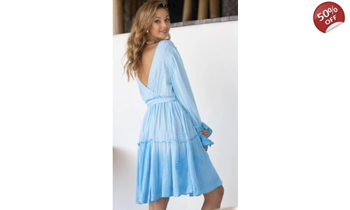 The Aida Dress features romantic sleeves with ribbon wrist ties, adding a touch of whimsy to your look. Its empire shape is carefully crafted to flatter and accentuate the natural curves of a woman's body, ensuring you feel beautiful and comfortable at the same time.