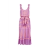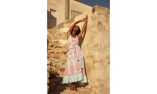 The Atzaro Dress by Pranella, a must-have addition to your wardrobe. This relaxed, thrown-on-anywhere essential features flowing lines throughout the full bodice and maxi skirt, creating a beautifully balanced silhouette. The optional ribbon ties at the waist and shoulders allow for versatile styling, while the subtly ruffled hemline adds a romantic touch.
