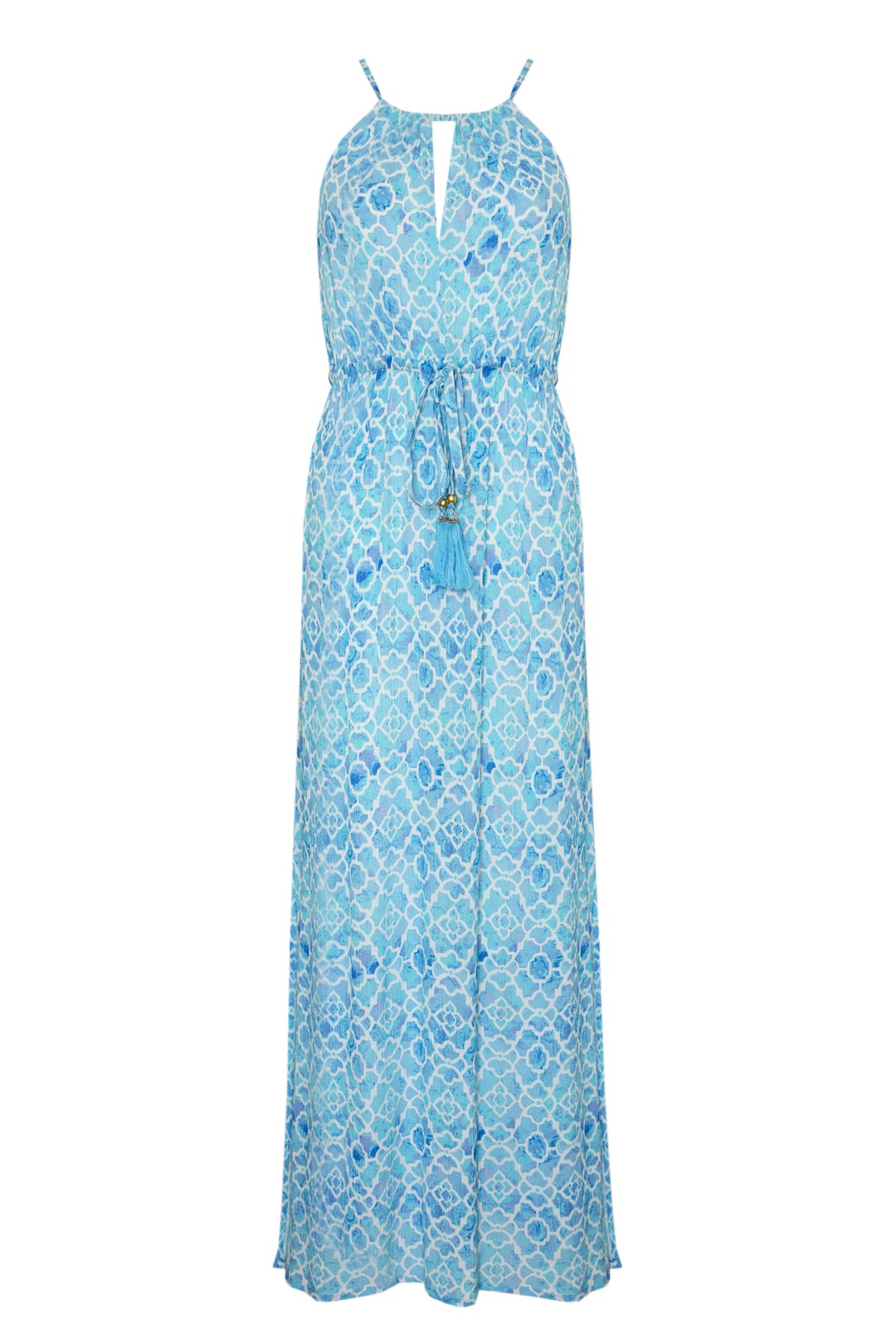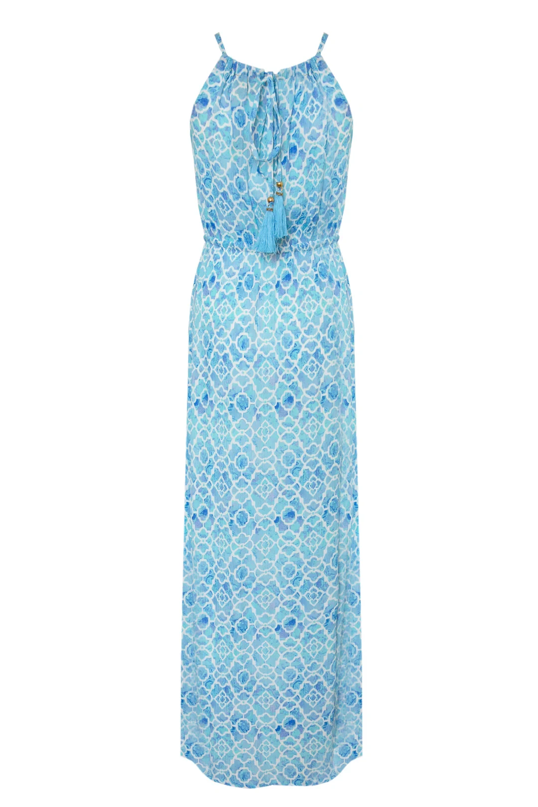 AZURE MOSAIC ANTIGUA CRINKLE MAXI DRESS Summary