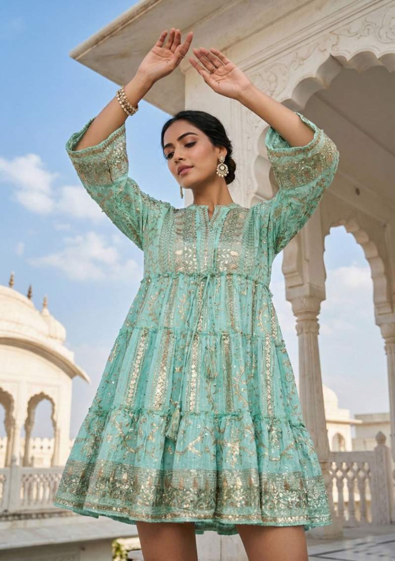 - Celicate embroidery with beautiful sequins