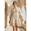 Featuring a stylish V-neckline and wide bilowy sleeves, this dress is designed to keep you cool and comfortable all day long. The subtle flowing silhouette add a touch of flair, ensuring you stay on-trend while enjoying maximum comfort. Plus, the easy-care fabric means you can toss it in the wash without a second thought, making it ideal for your busy lifestyle.
