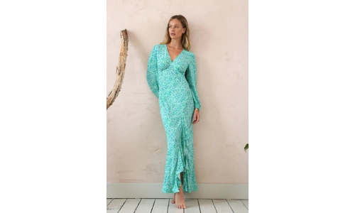 Crafted from a breathable viscose dress fabric, this dress ensures you stay cool and comfortable, even on the warmest days. The bias cut dress design flatters your figure, hugging your curves in all the right places while allowing for easy movement. You'll love how effortlessly this dress flows as you walk, creating a mesmerizing silhouette that turns heads.
