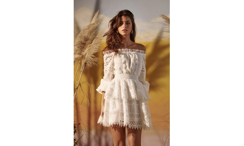 - Stunning white dress with cotton fabric full of lace embroidery.