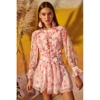 - Soft and fine three-dimensional gas robe with floral print in pastel pink and bluish gray
