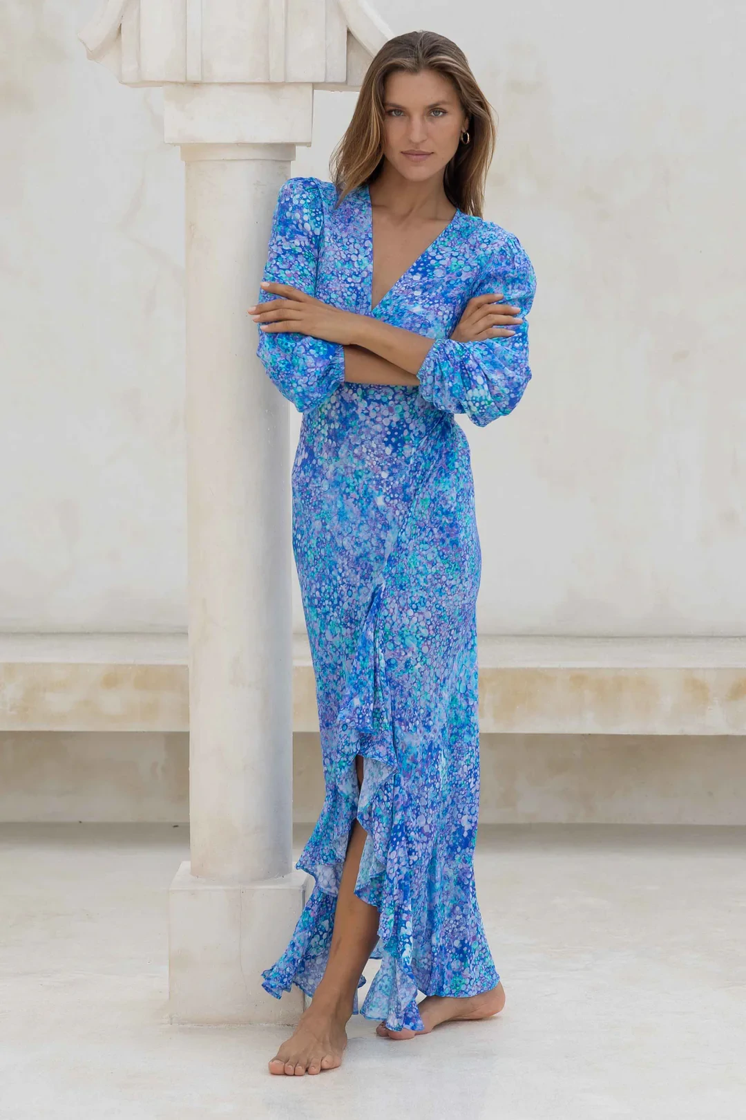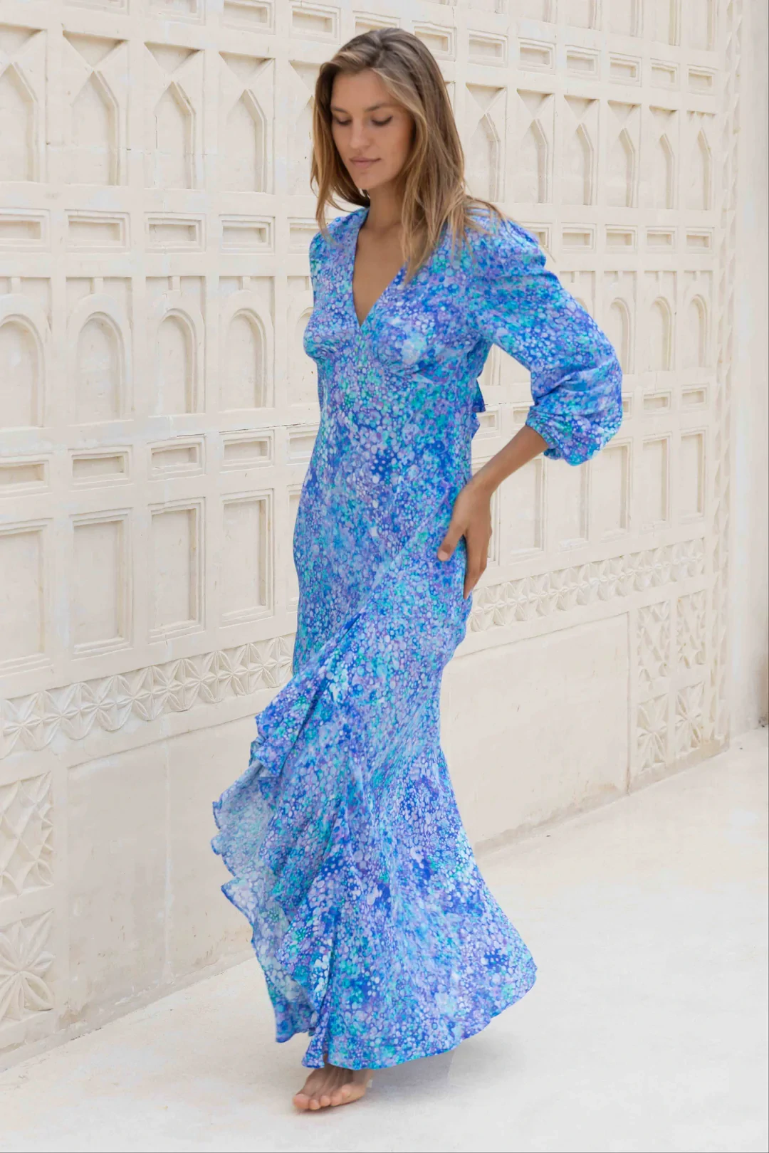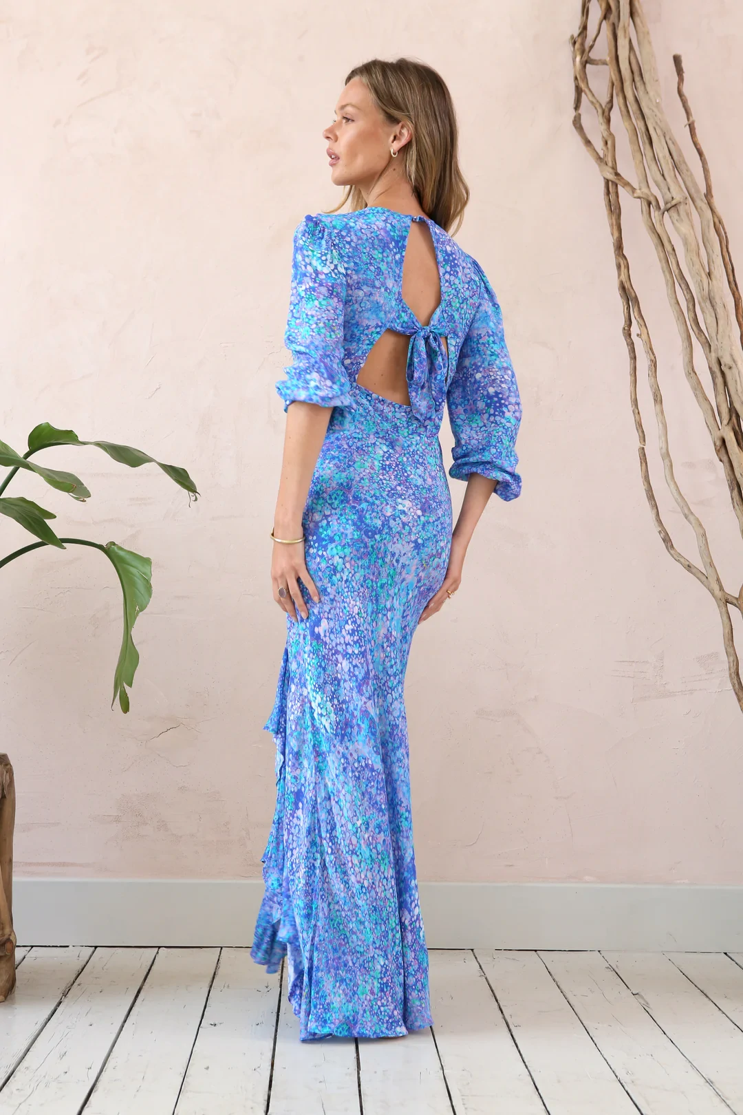 - Ruffle detailing down front slit
