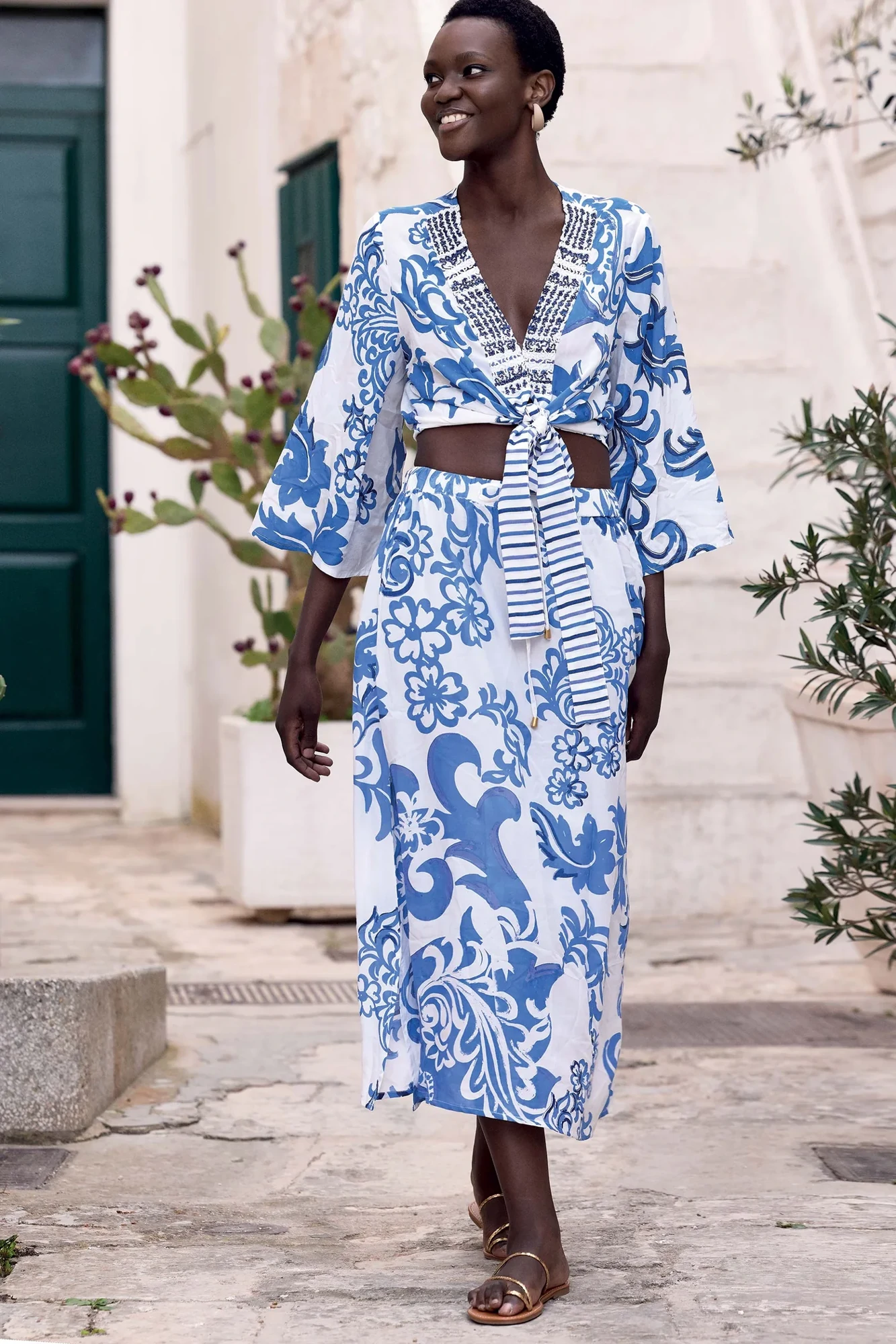 - Long skirt for flowing silhouette