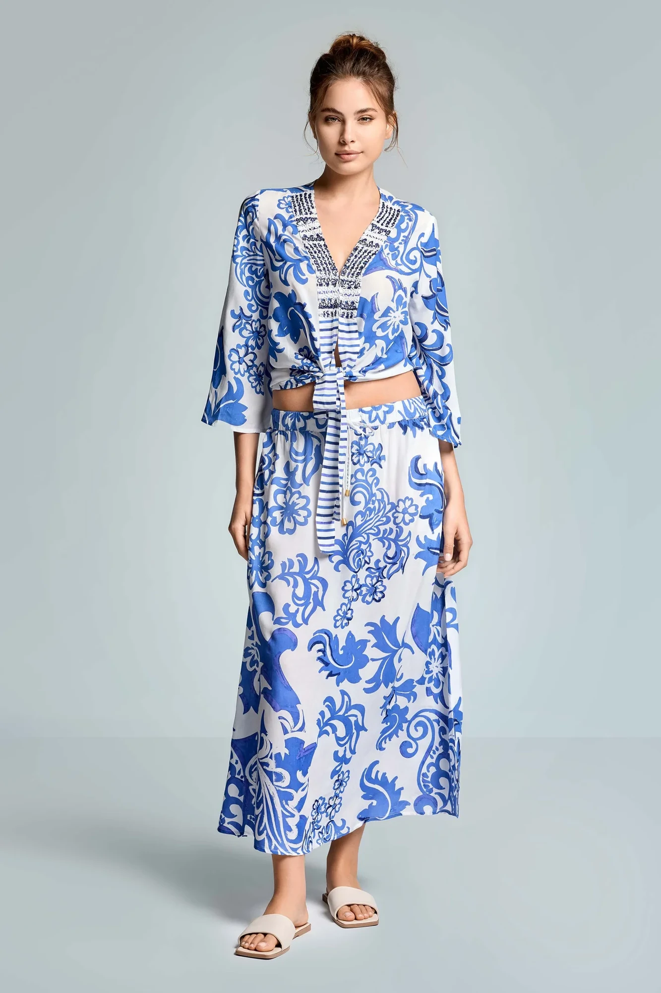 Don't miss out on the chance to elevate your summer wardrobe with the Ivy Long Skirt-White Blue. Embrace the beach vibes and make a lasting impression wherever you go. Get yours today and experience the perfect blend of style and comfort!