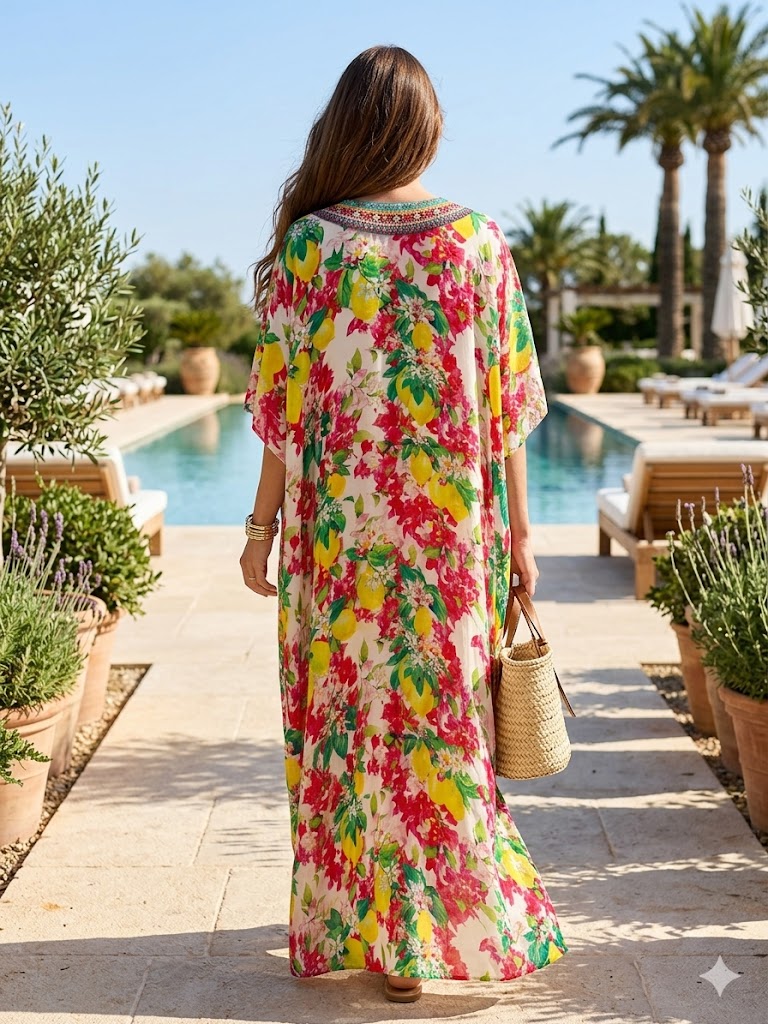 Introducing the stunning Kaftan-Florence, a must-have addition to your wardrobe that perfectly blends style and comfort. This exquisite piece is not just a garment; it's a statement of elegance and sophistication. Crafted with the finest materials, the Kaftan-Florence is designed to make you feel fabulous, whether you're lounging by the pool, enjoying a beach day, or attending a casual brunch with friends.