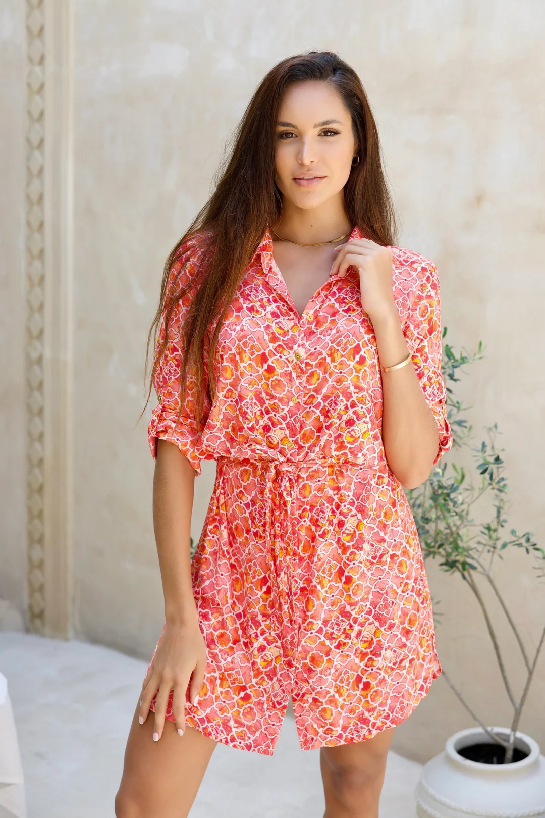 Introducing the exquisite MARBLE MOSAIC ZANZIBAR SHIRT DRESS, a stunning addition to your summer wardrobe that effortlessly combines elegance and comfort. This adjustable sleeve dress is designed to provide versatility, allowing you to customize the sleeve length to suit your personal style and the occasion. The button down dress features a classic button closure that adds a touch of sophistication while ensuring ease of wear.