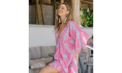 The Ola Kaftan by Pranella - your new go-to piece for effortless style and comfort. Designed with a bias cut rayon, this kaftan offers an elegant and flowy look that effortlessly drapes over your silhouette. The V-neck design not only flatters the décolletage but also provides full coverage, making it suitable for various occasions. With its mini length and one-size-fits-all design, the Ola Kaftan is the perfect throw-on option for all body types, offering both style and comfort.