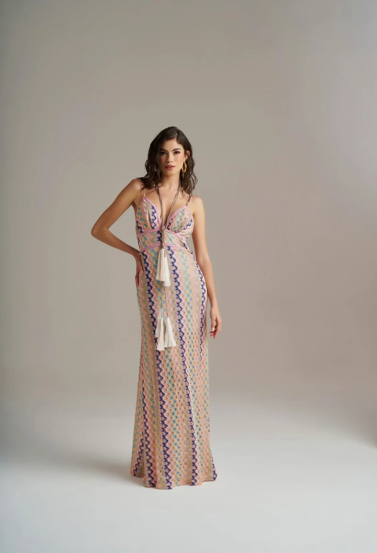 Adorned with a delightful pastel zigzag pattern dress, the PHO Firenze MAXI DRESS brings a refreshing pop of color to your ensemble. The soft hues are perfect for any season, making it a versatile choice for your wardrobe. Pair it with your favorite sandals for a relaxed daytime look or elevate your style with heels for an evening affair.