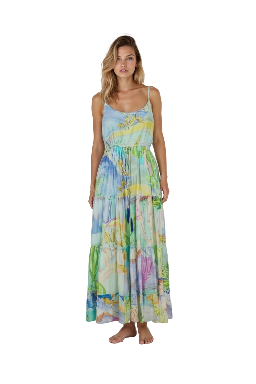 Introducing the exquisite RACHEL YUCCA PRINT DRESS, a stunning addition to your wardrobe that embodies elegance and sophistication. This elegant maxi dress is designed to make a statement, whether you are attending a formal event or enjoying a casual day out. Crafted with meticulous attention to detail, this dress features adjustable spaghetti straps that allow for a customized fit, ensuring comfort and style for every body type.