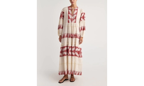 Long Tunic Dress by Pearl & Caviar Nat/Red Summary