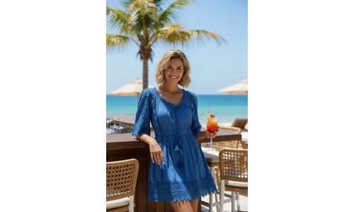 Designed for those who appreciate the finer things in life, the Sandy Dress is a must-have for fashion-forward individuals. Whether you're strolling along the beach or enjoying a resort getaway, this dress effortlessly captures the essence of laid-back luxury