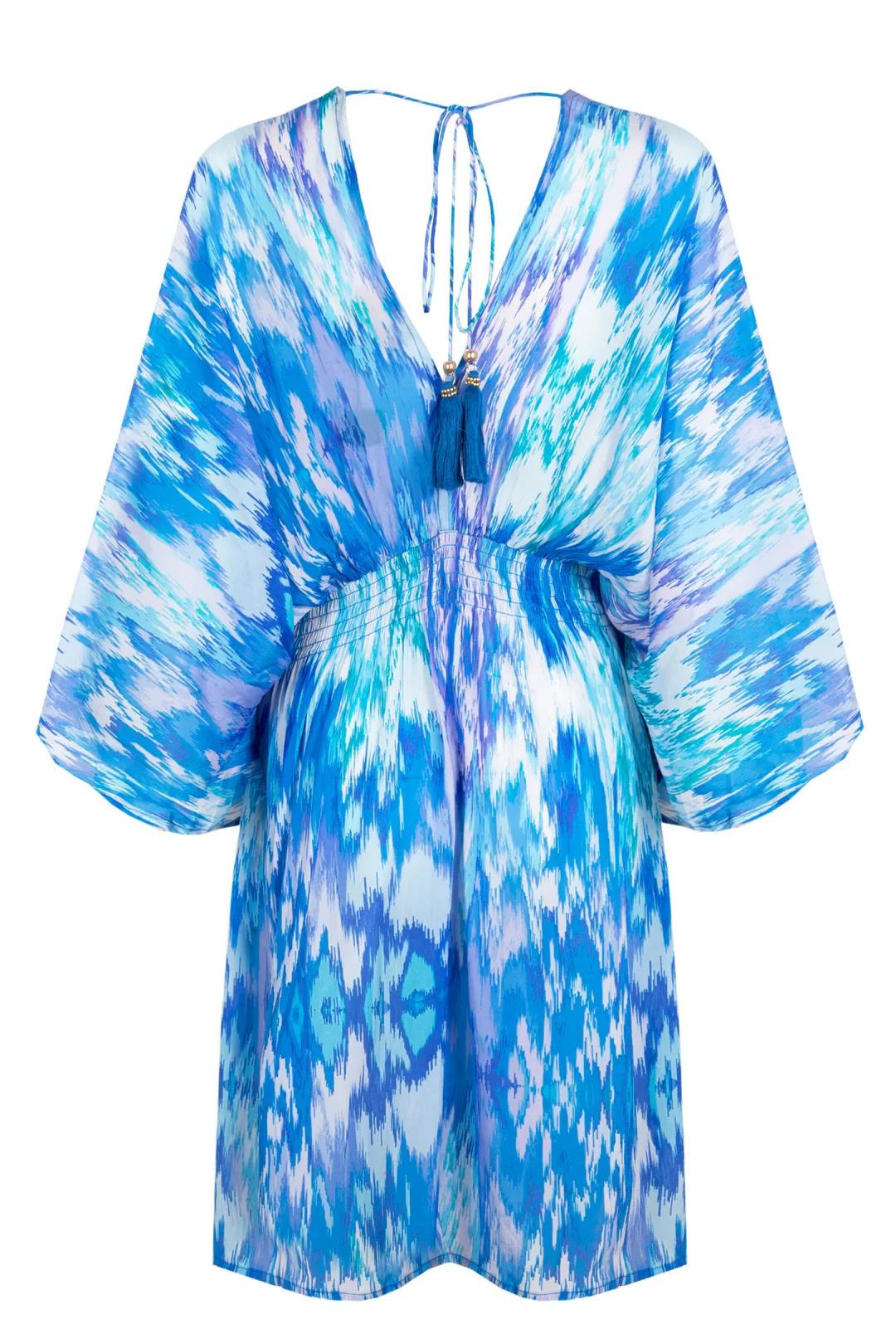 This casual dress is designed with versatility in mind. Pair it with your favorite swimwear for a laid-back beach day, or wear it over a fitted dress for a more polished appearance. The SEA DREAM MINI CAPRI KIMONO can easily be dressed up, making it a perfect dressed up kimono for evening outings or special occasions. Its elegant design and vibrant colors will make you stand out in any setting.